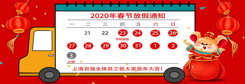 百強(qiáng)洗滌設(shè)備放假通知,現(xiàn)將2020年春節(jié)放假安排通知如下:1月23日至2月2日放假調(diào)休,共10天。2月3日(星期一)上班。節(jié)假日期間,公司除值班人員按照值班表做好值班工作之外,其他人員休息。